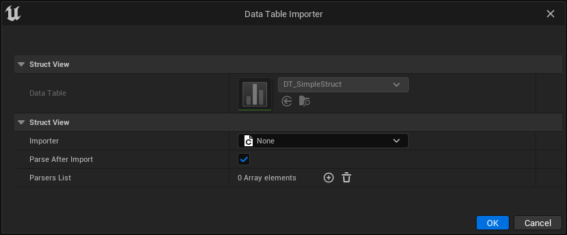 Whenever you need to reimport the data table, you must use the Import Dialog window. Settings are saved for each Data Table whenever you modify it, and the dialog is opened with the data already filled. You can also edit this data from the plugin settings inside the Project Settings window.